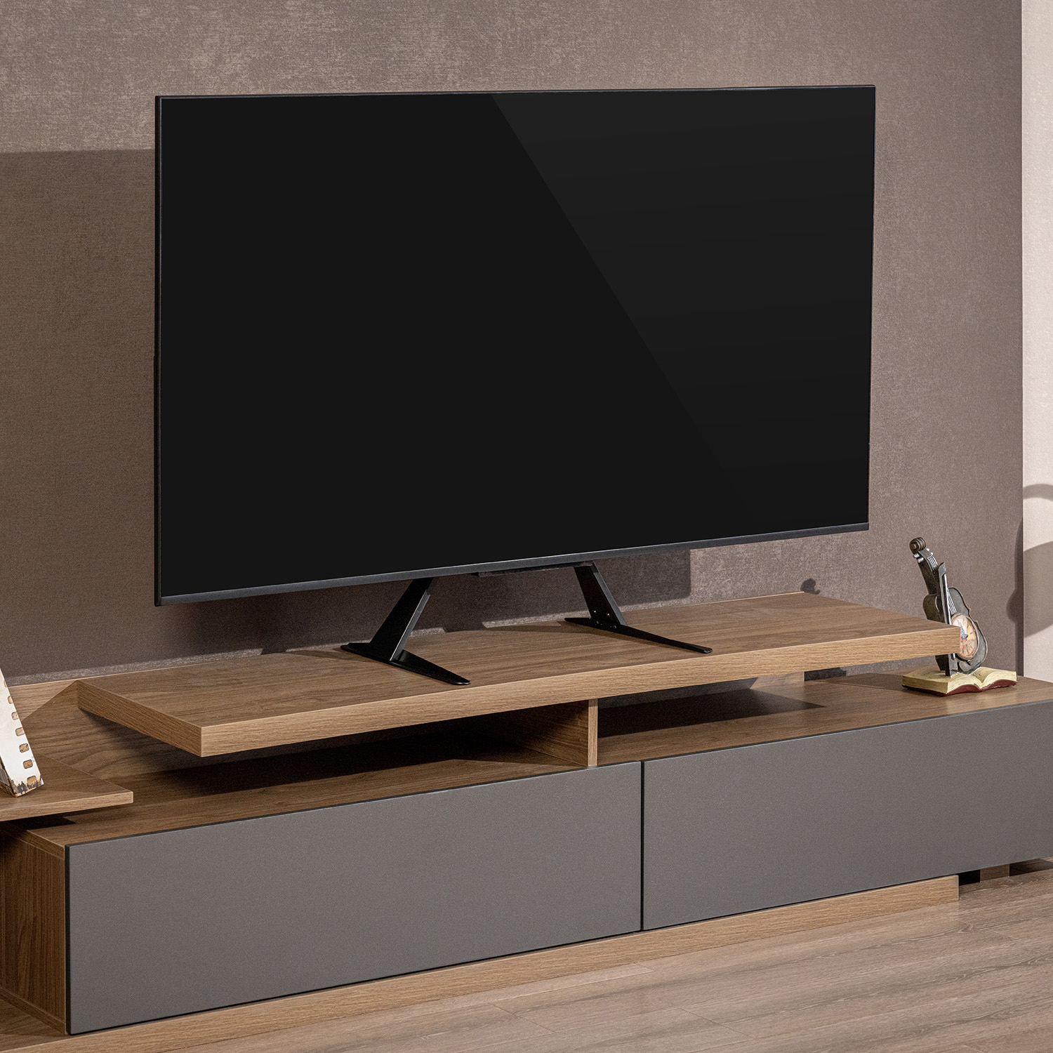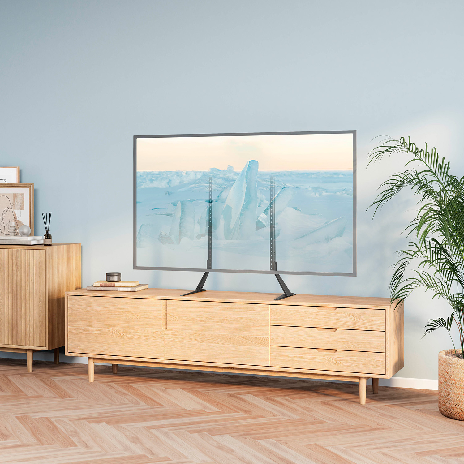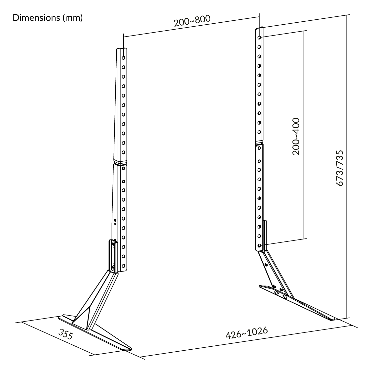 The Napofix® TM0710 TV Table Mount is perfect for supporting TVs up to 40kg, taking up little surface space. Two adjustable heights accommodate most 23-75'' TVs with VESA up to 800x400. Non-slip pads protect furniture from scratches.