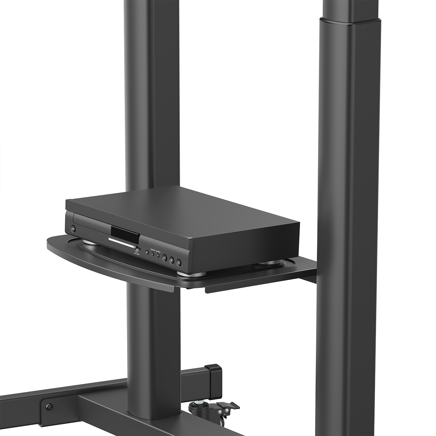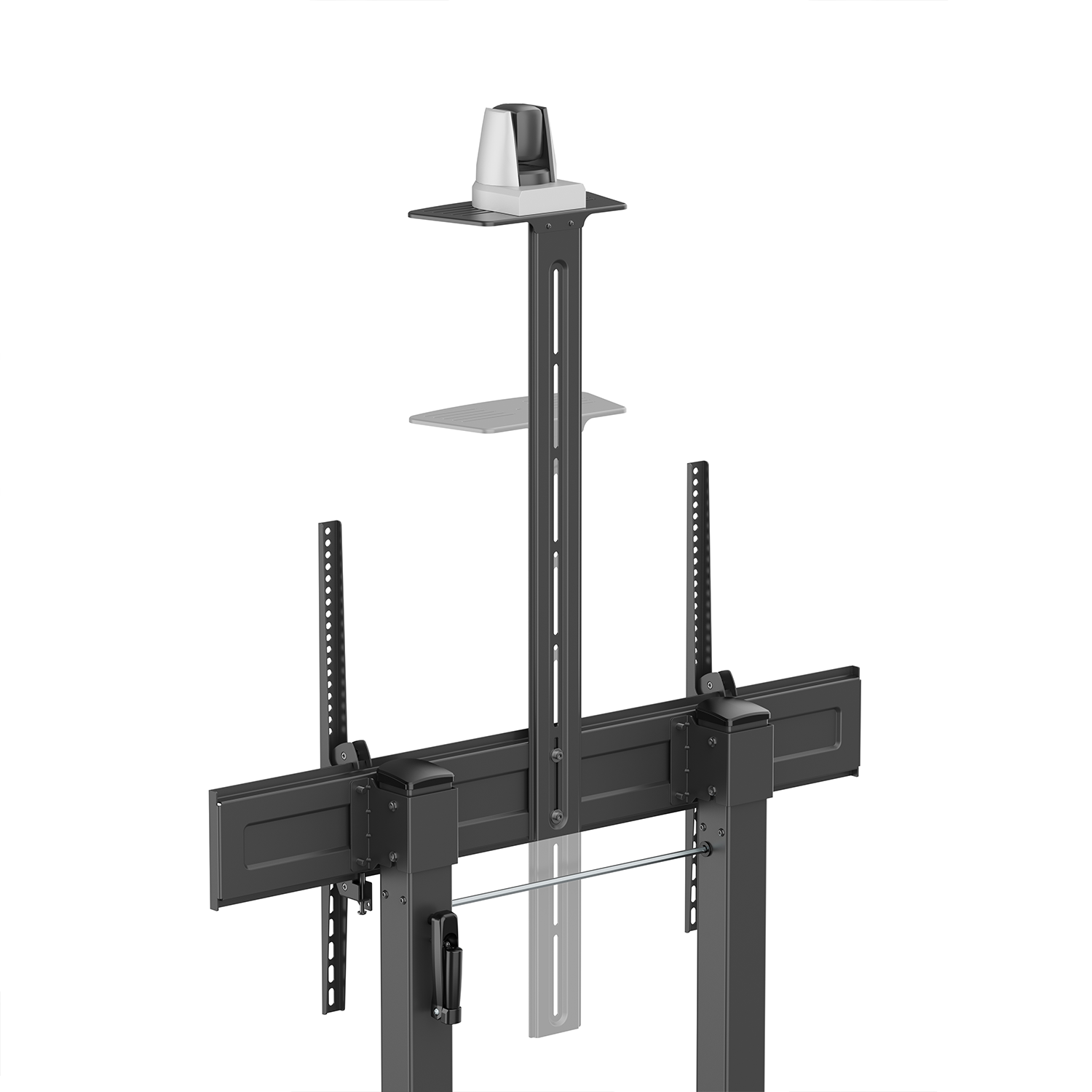 O grande destaque do Suporte de Chão Carrinho AA para TV Napofix® VWA1230B-A inclui duas prateleiras estrategicamente posicionadas: uma prateleira AV robusta, com capacidade até 5 kg, perfeita para computadores portáteis, leitores de multimédia ou outros periféricos; e uma prateleira superior para câmara ajustável em altura, com capacidade até 5 kg, tornando-o numa solução ideal para sistemas de videoconferência.